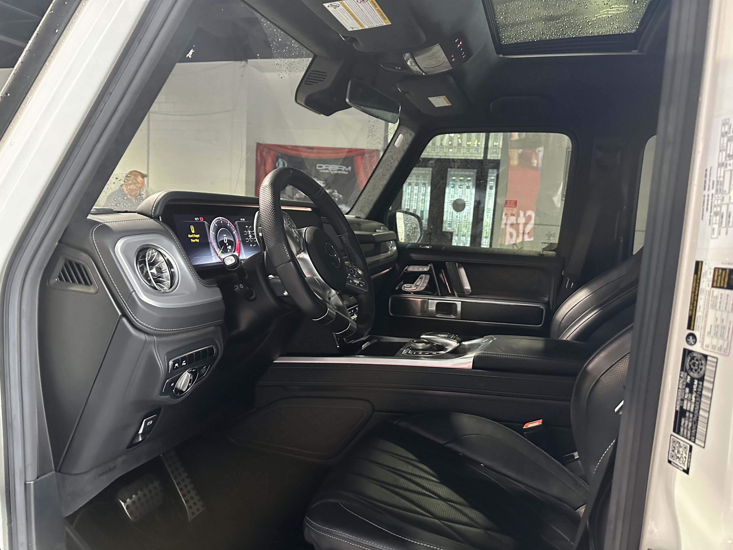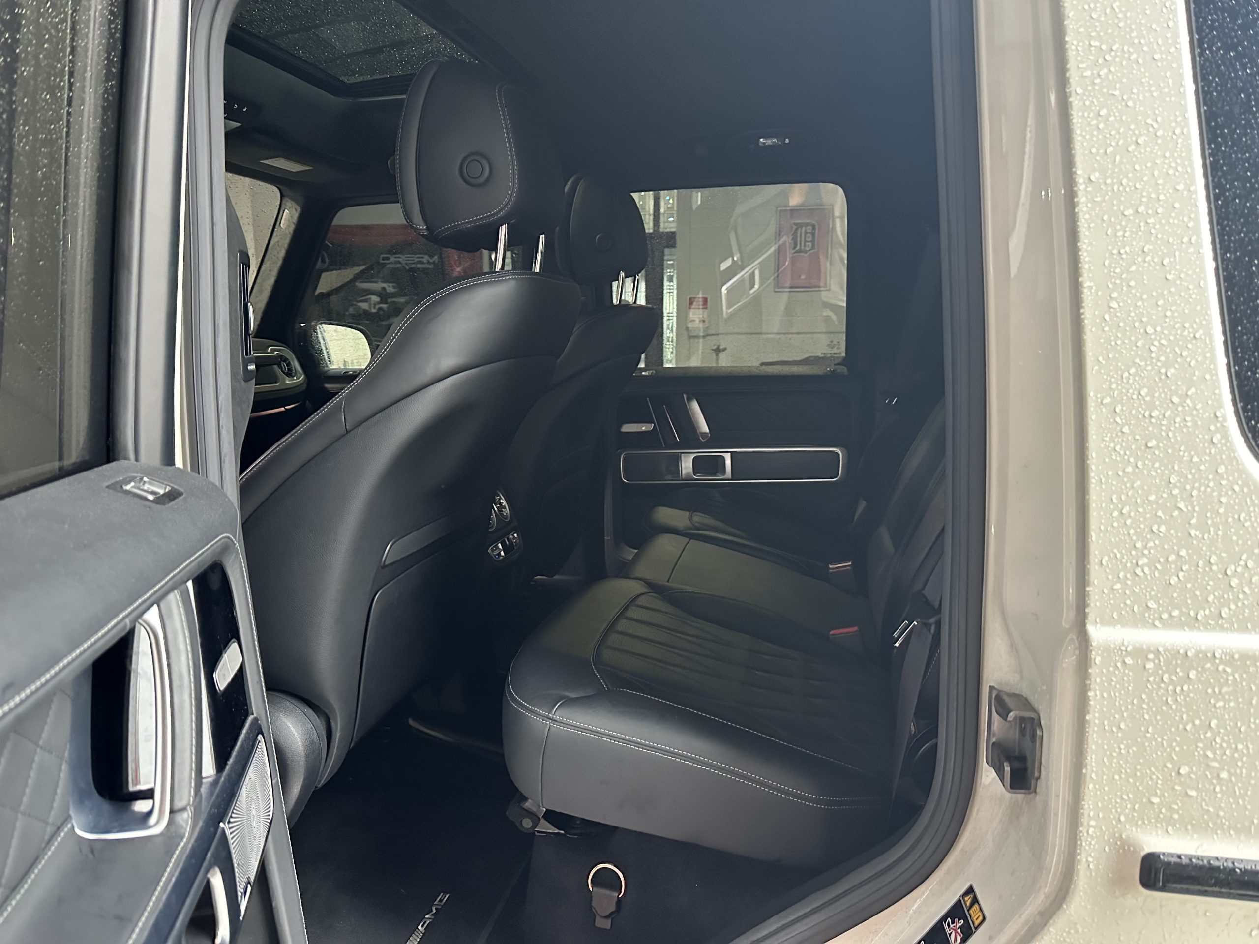 Step inside, and the G 63 surrounds you with premium materials, advanced technology, and AMG performance detailing. Hand-stitched leather, carbon fiber trim, and customizable ambient lighting create an upscale atmosphere, while supportive sport seats keep you comfortable on long drives or during spirited runs.